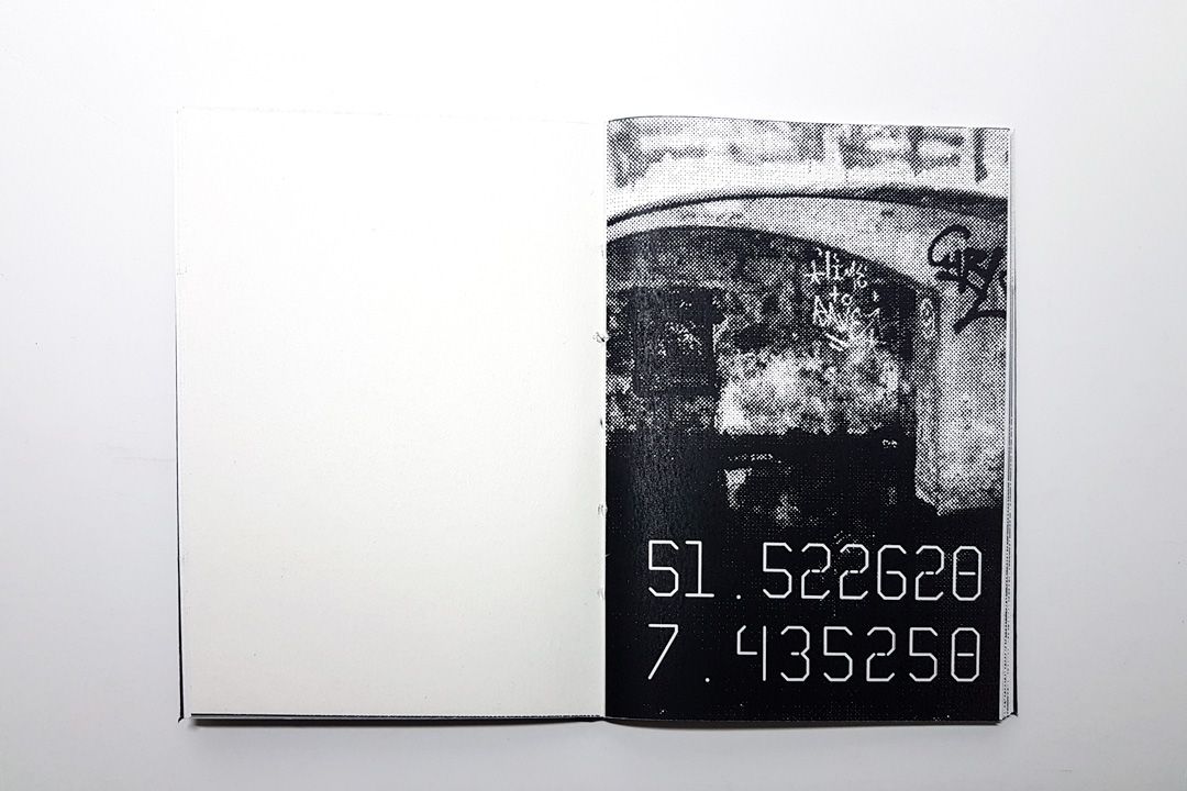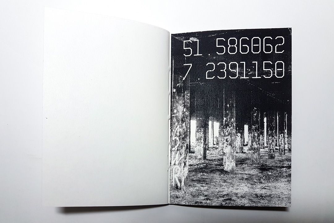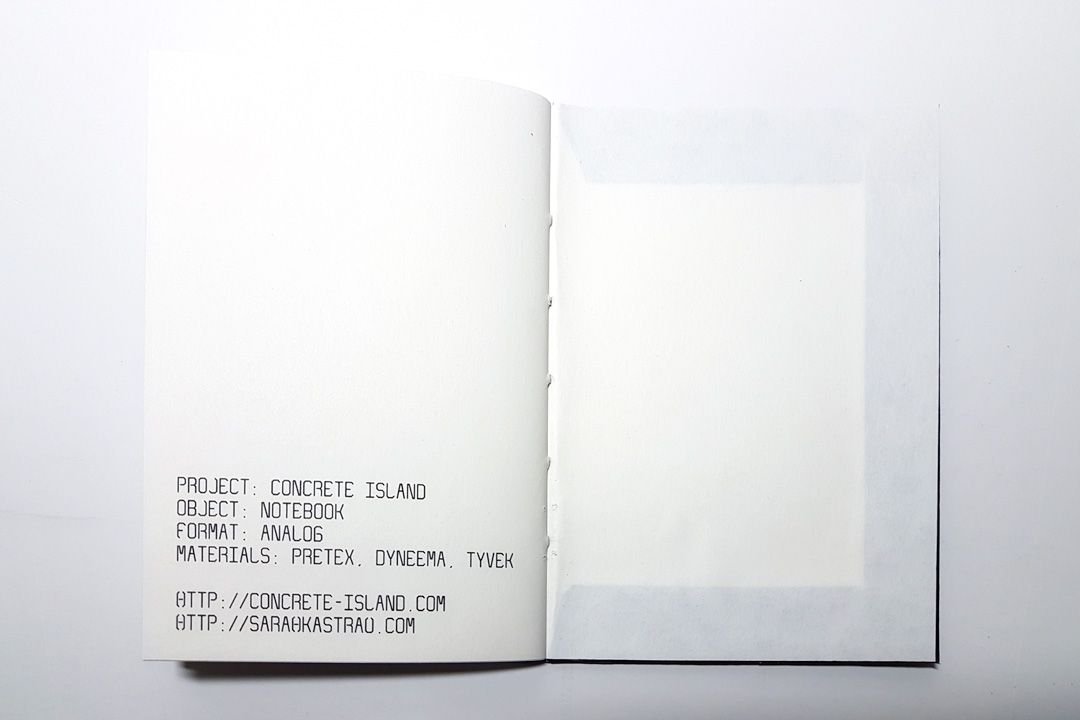 A pocket sized water-resistant notebook made from the materials left over from my experimentation with outdoor textiles. Take it with you on your next urban exploration. Due to the coating the paper works best with a ballpoint pen. Includes six printed pages with photographs and coordinates from the project.